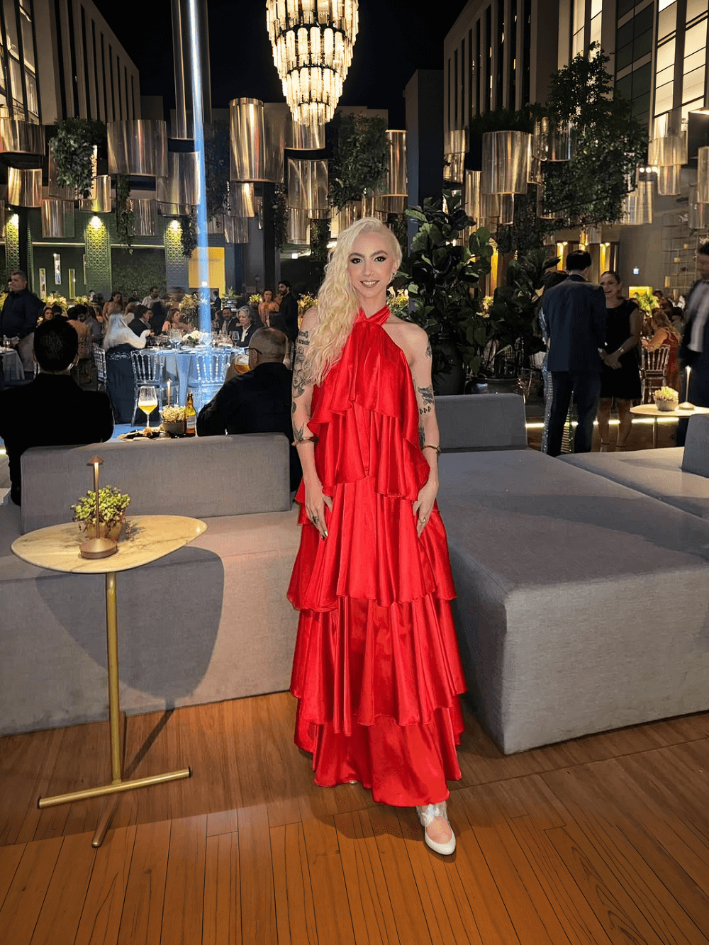 A Line Halter Tiered Satin Long Prom Dress Red Formal Classy Dresses