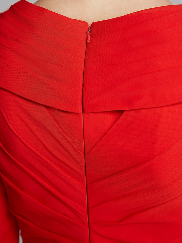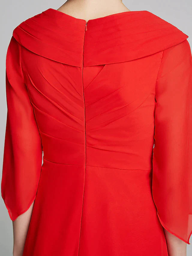 A-Line Mother of the Bride Dress Elegant V Neck Floor Length Chiffon Half Sleeve with Pleats Appliques