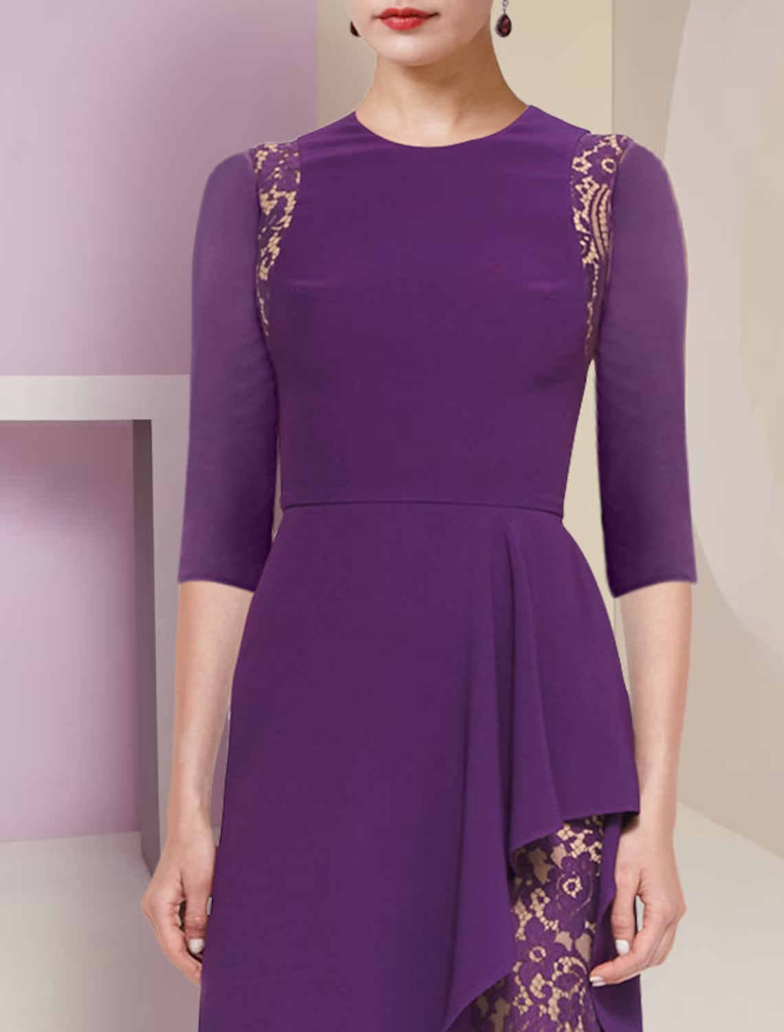 A-Line Mother of the Bride Dress Formal Elegant Scoop Neck Lace Stretch Fabric Half Sleeve with Pleats