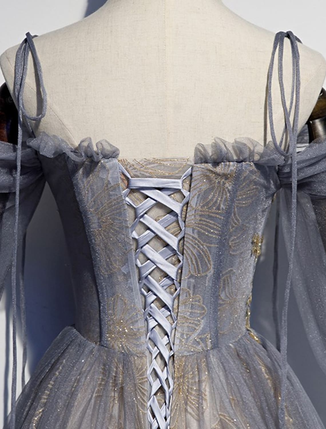 A-Line Prom Dresses Dress Wedding Floor Length Strap Tulle with Sequin Embroidery