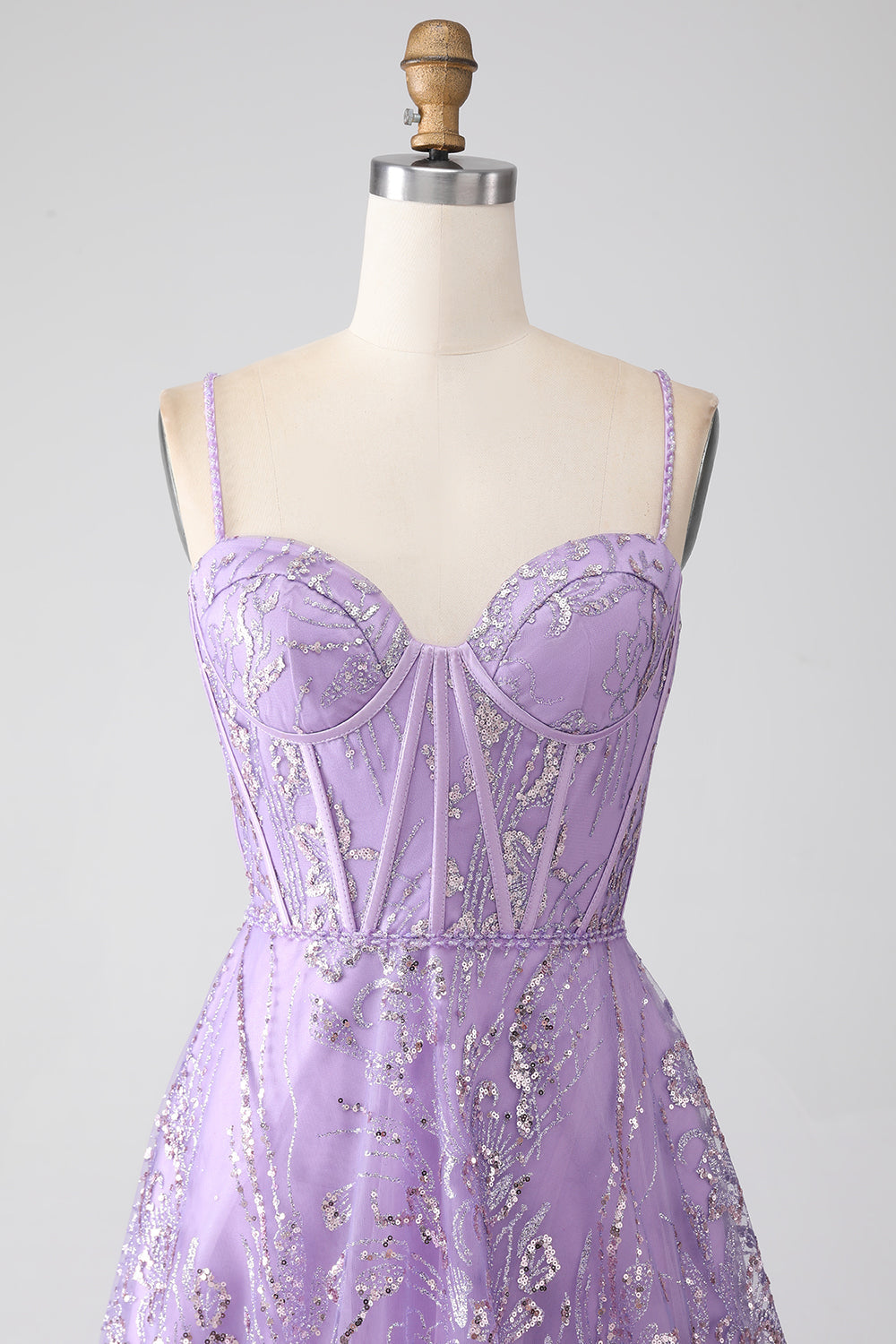 A-Line Spaghetti Straps Lilac Corset Prom Dress with Sequins Floor Length