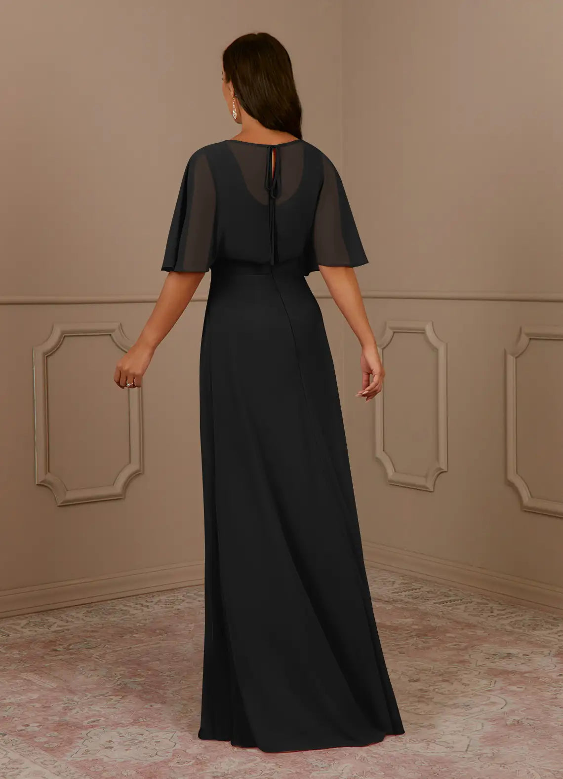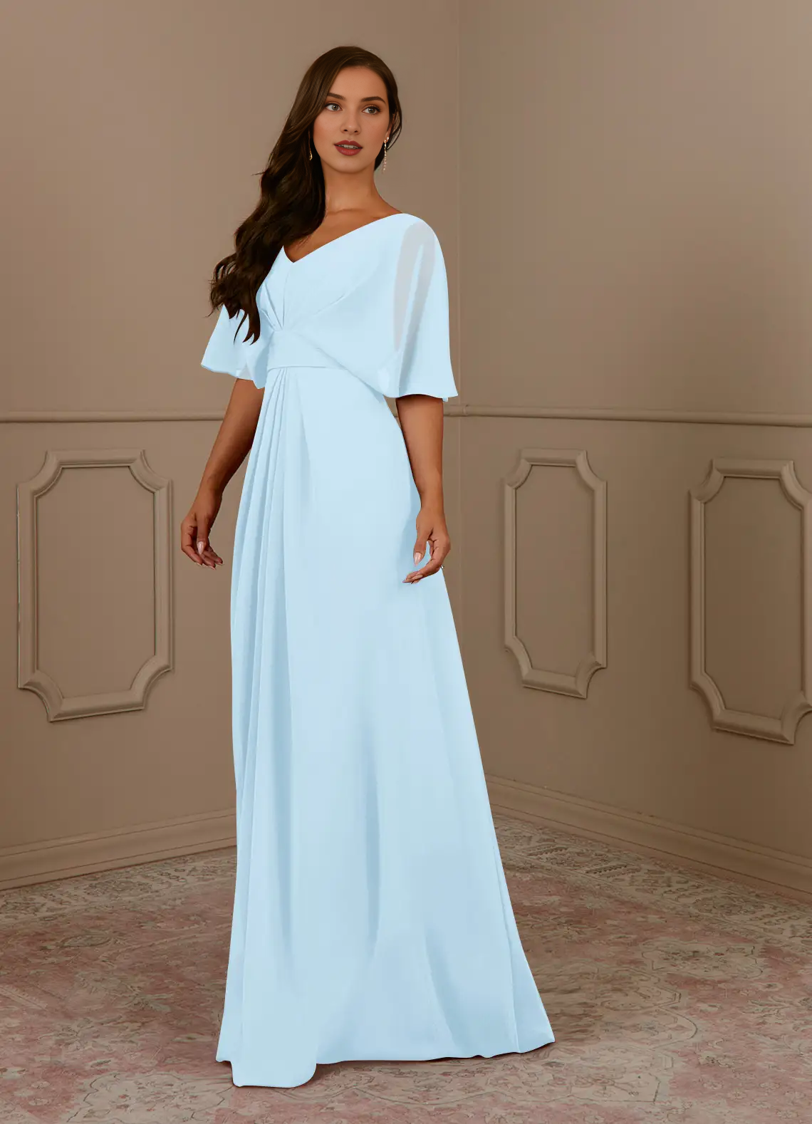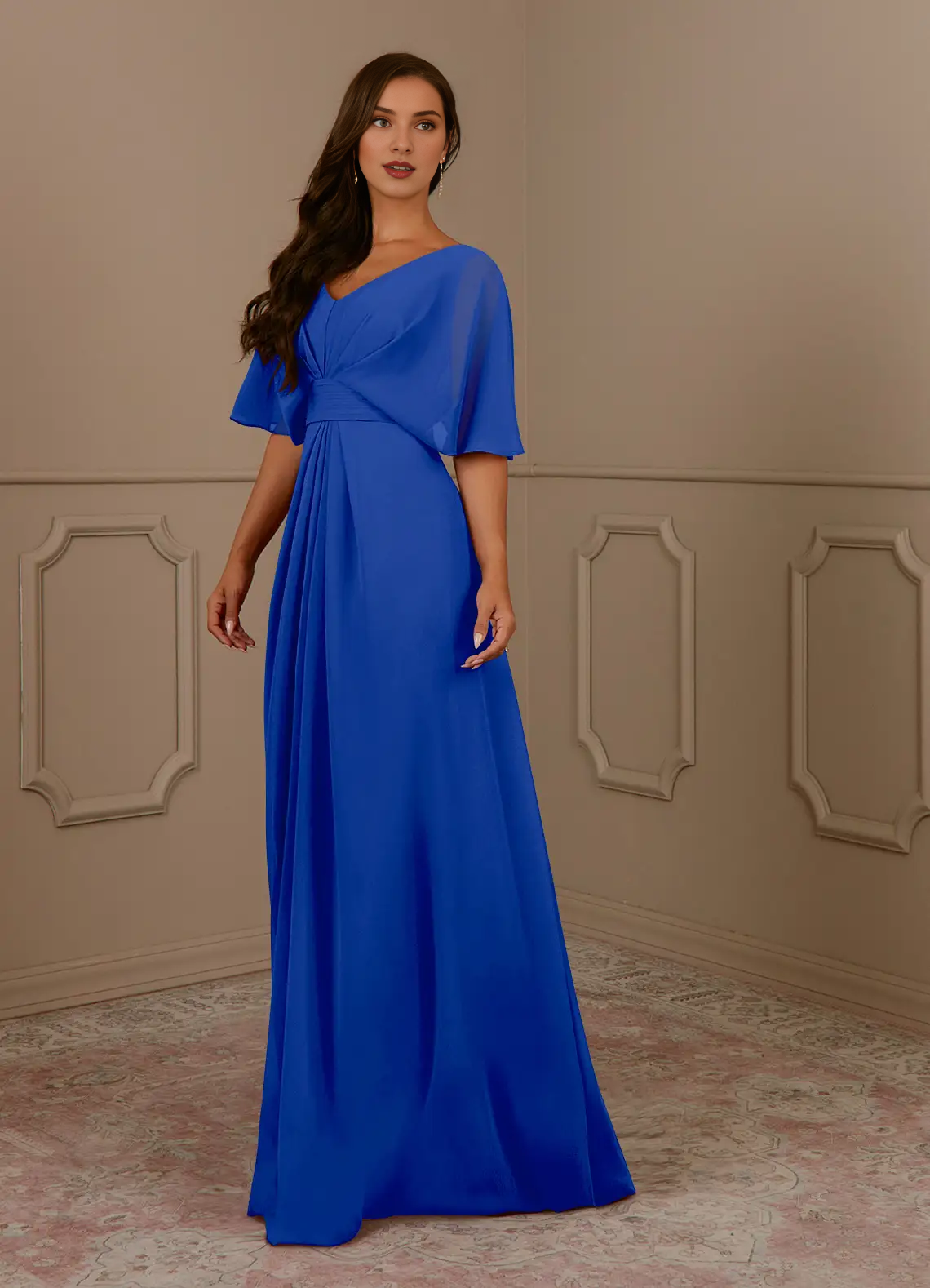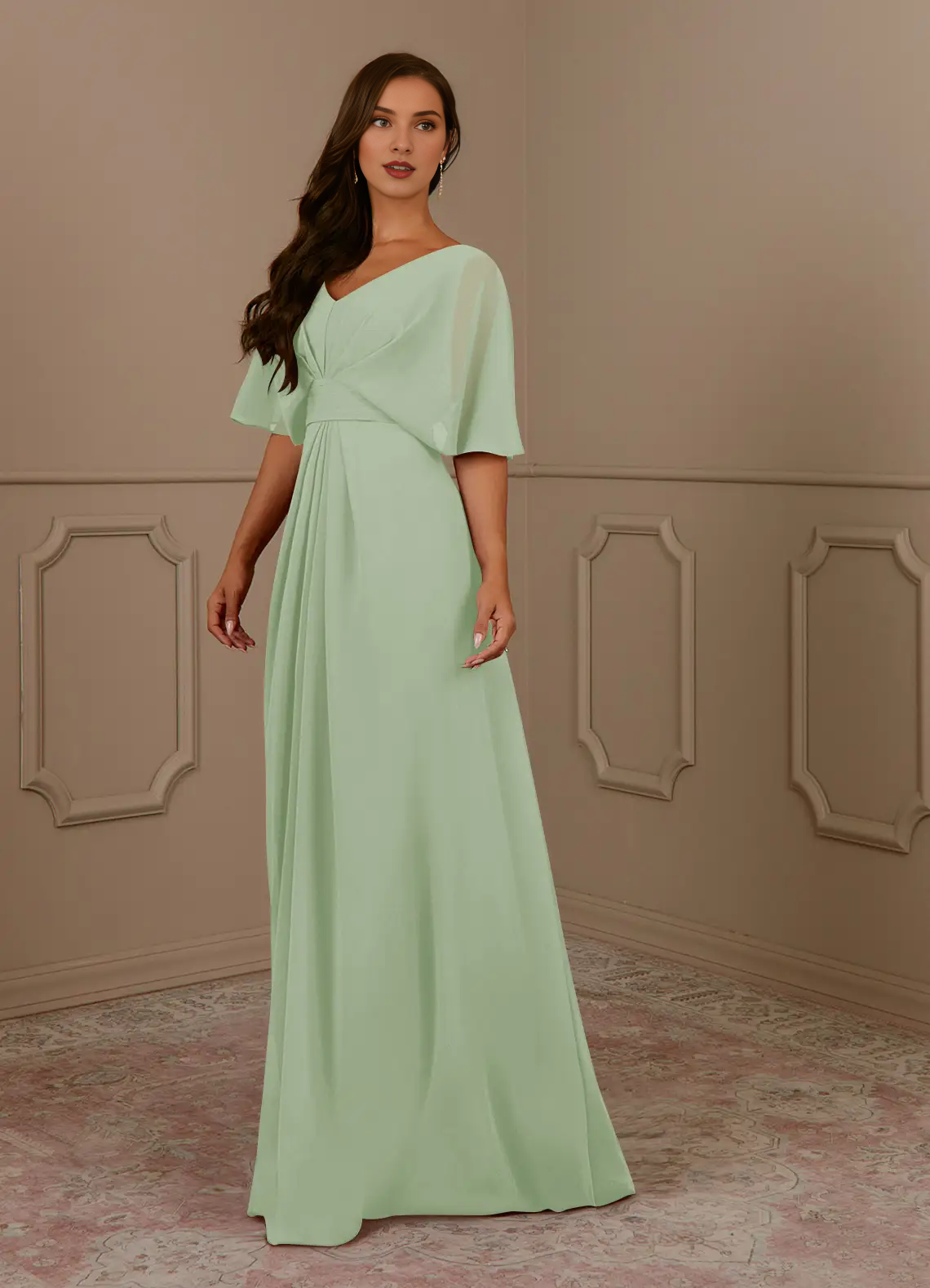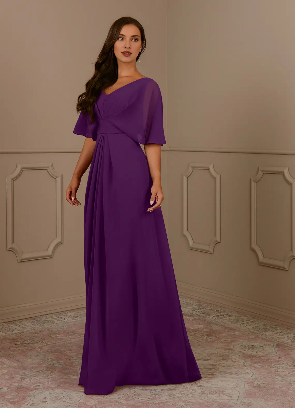 A-line V-neck pleated chiffon and floor length mother of bride dress
