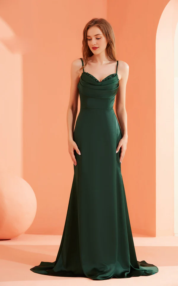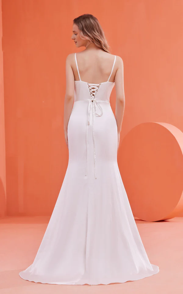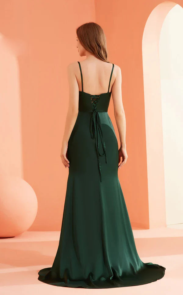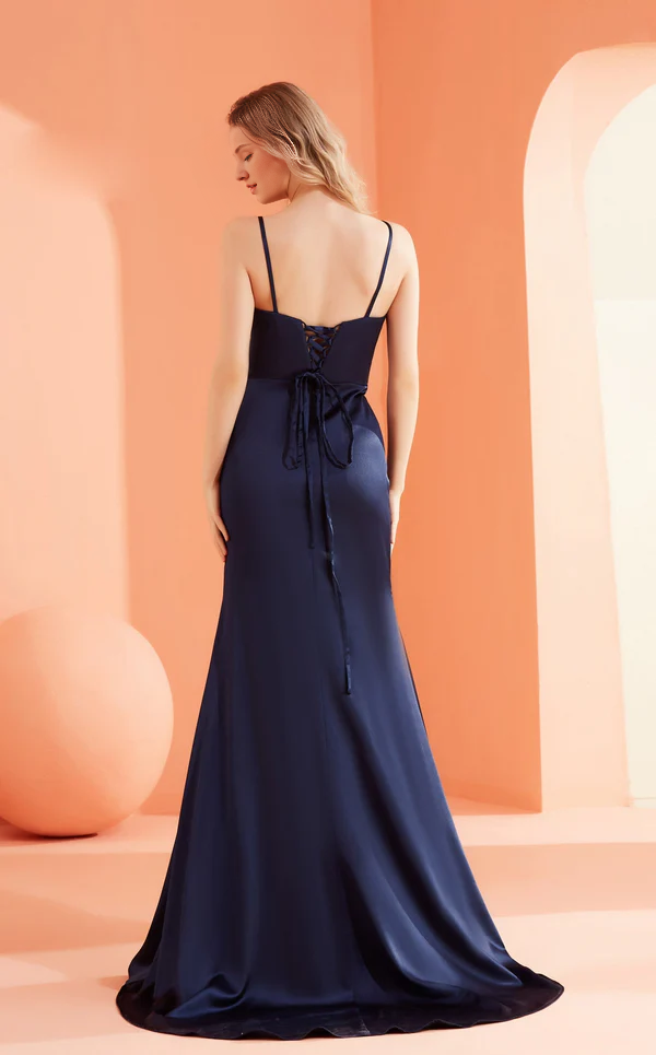 A-line V-neck sleeveless tight corset with thin shoulder straps and floor length Prom dress