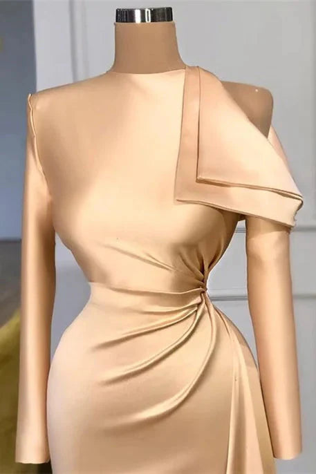 Amazing High Neck Long Sleeves Champagne evening Dress Mermaid Online