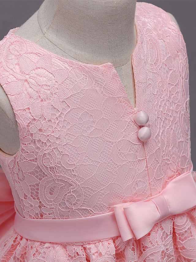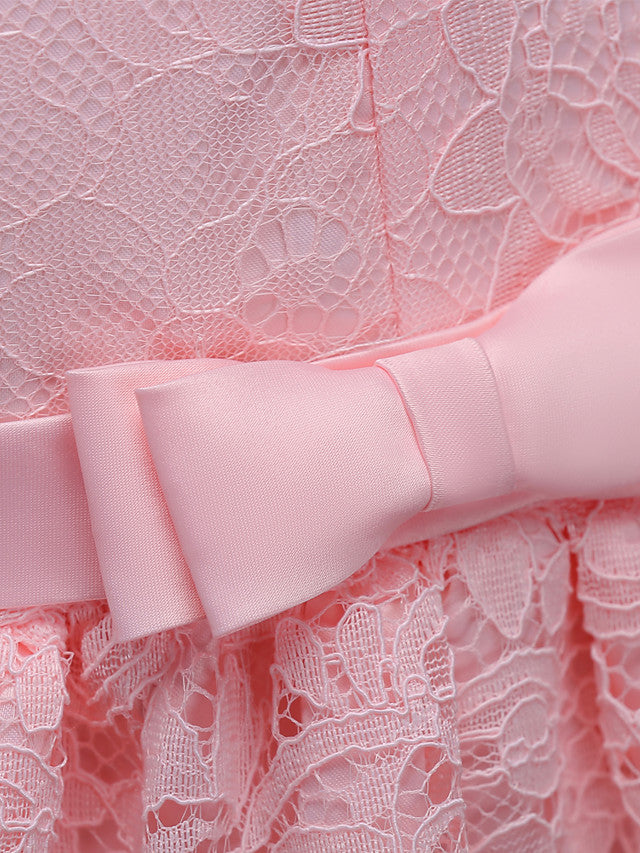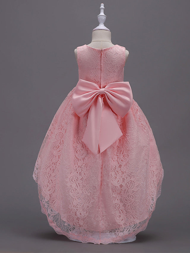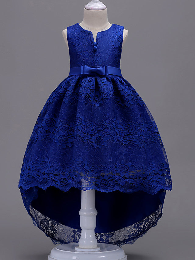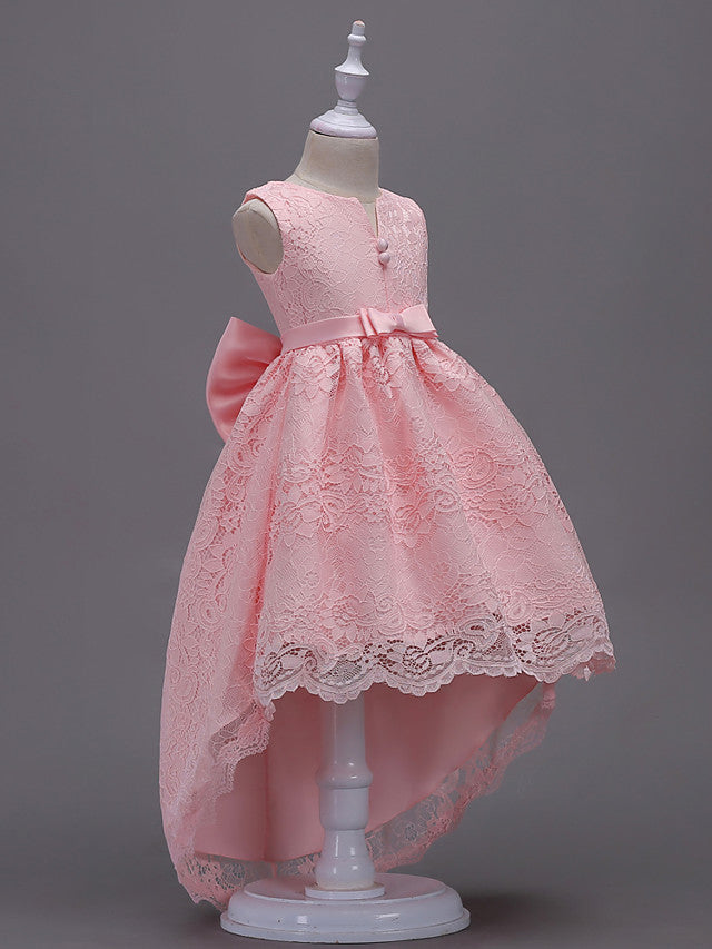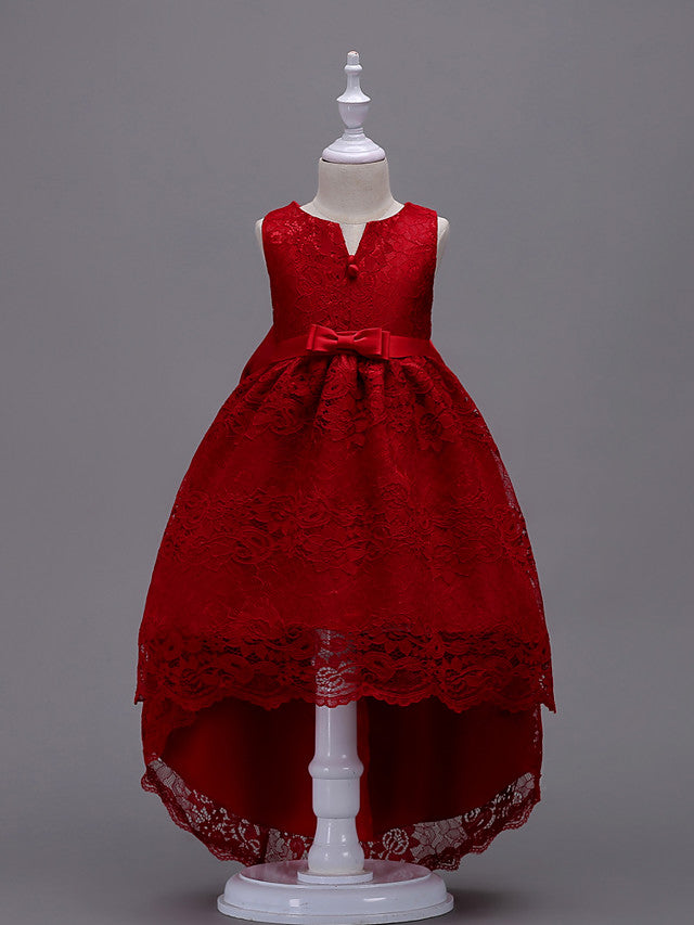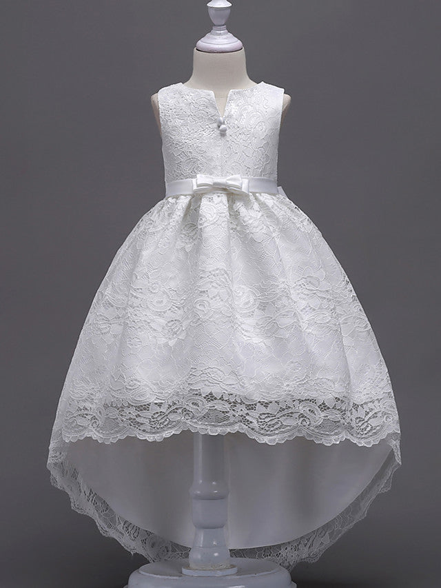 Asymmetrical Lace Dresses with V Wire and Bow Embroidery for Flower Girls