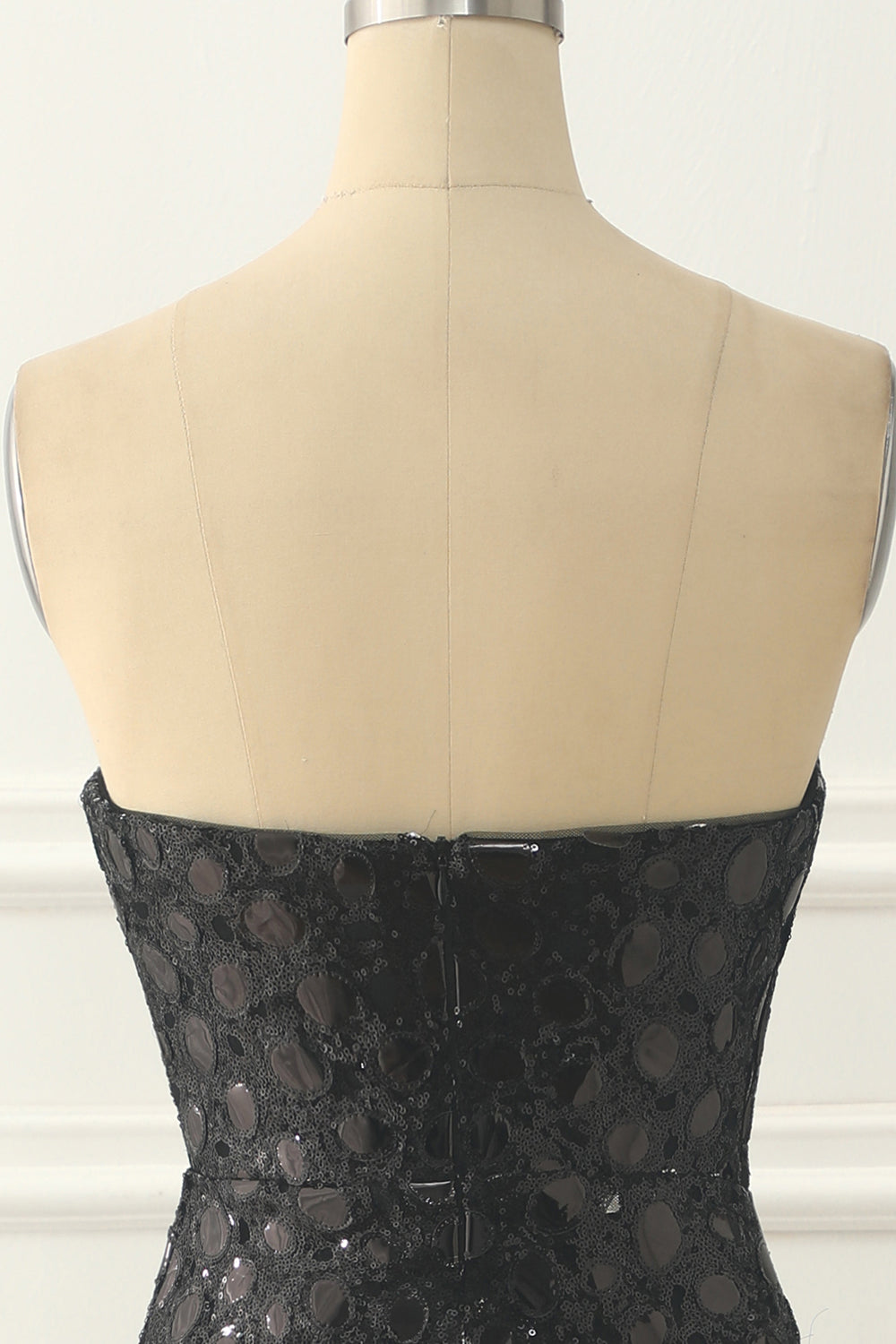 Black Sheath Strapless Sequins Prom Dress Off Shoulder Sexy