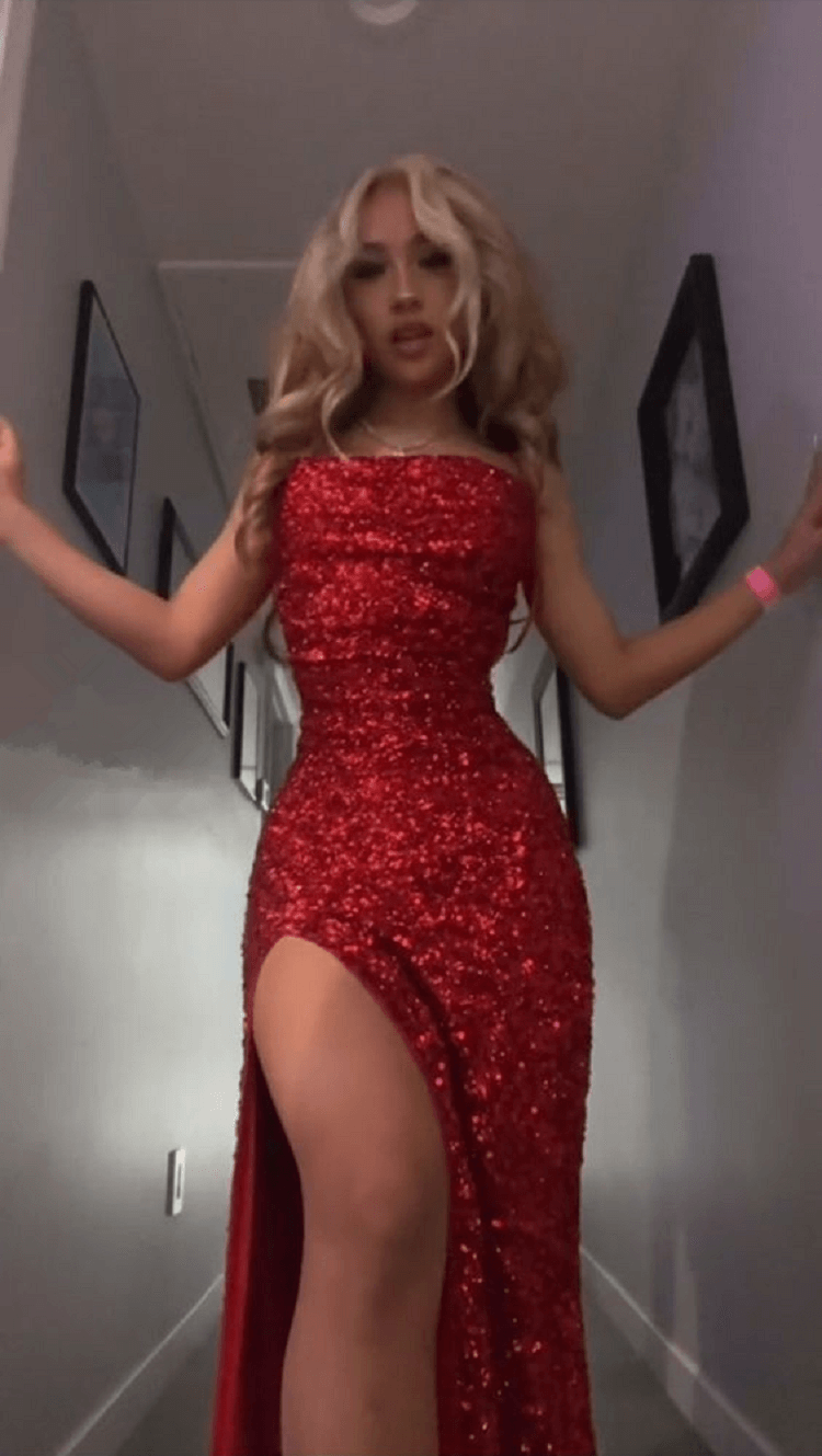 Burgundy Prom Dress Tight Long Leg Split Evening Gowns