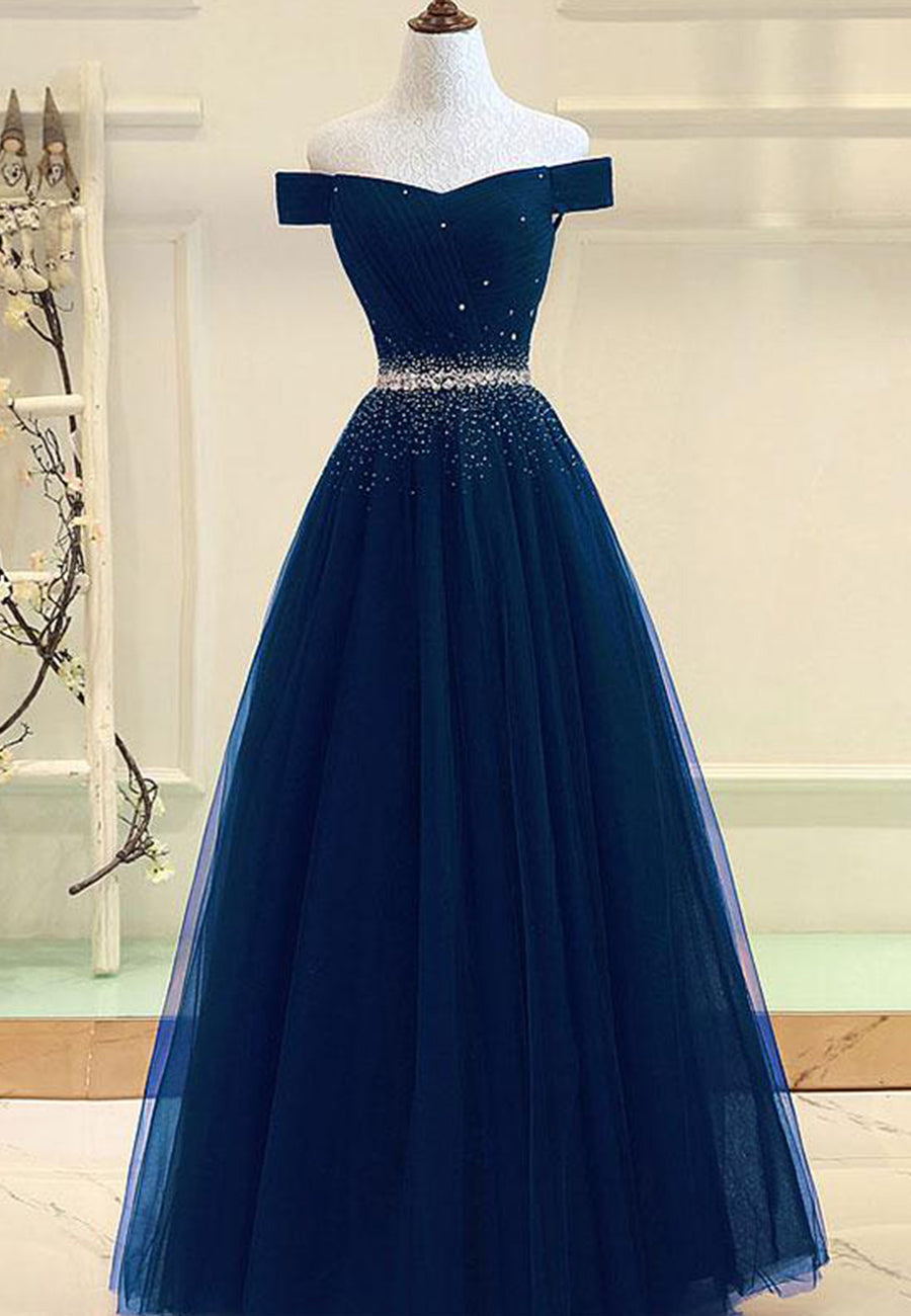 Burgundy Tulle Long A-Line Prom Dresses,Off the Shoulder Formal Evening Dresses