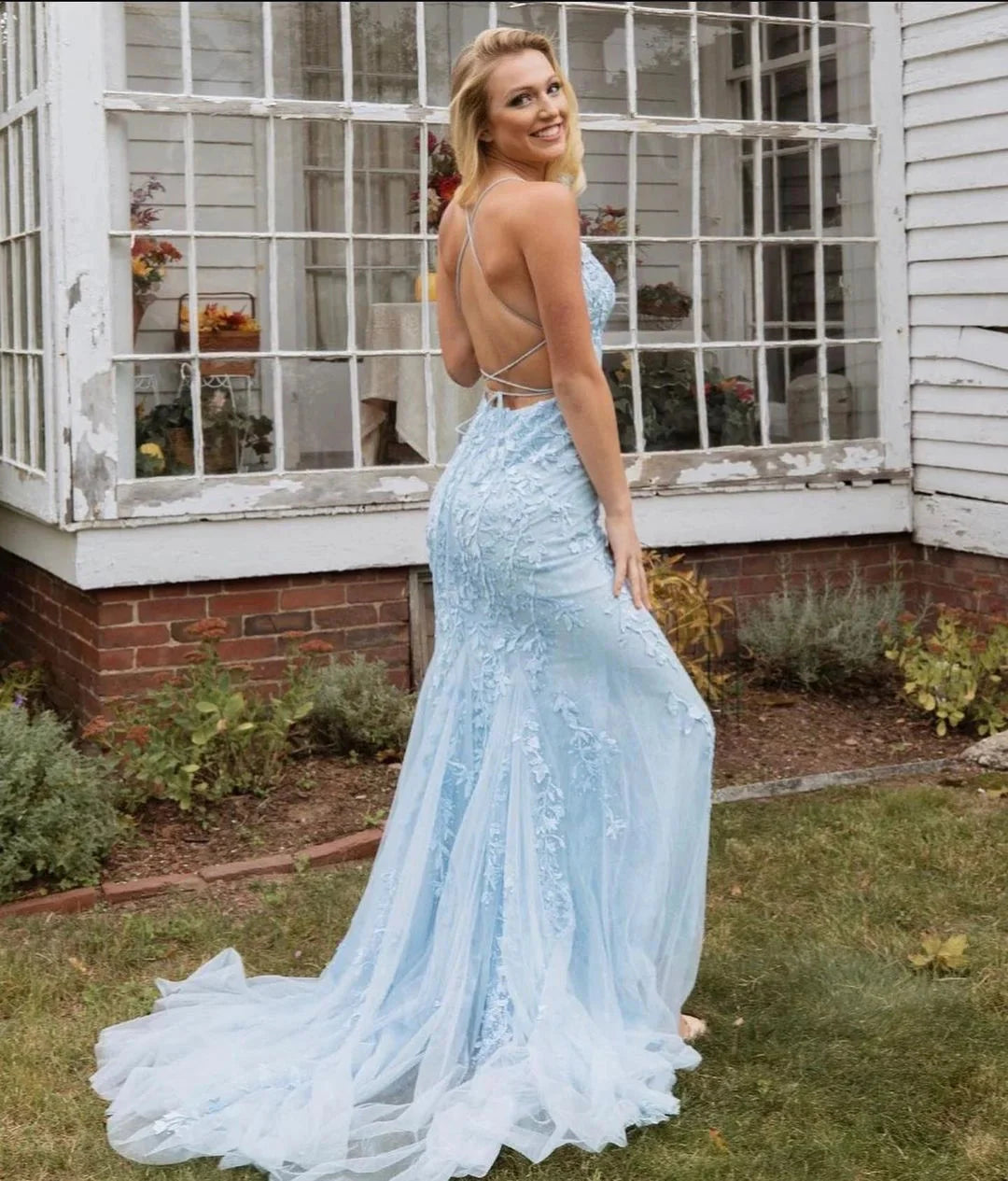 Charming Spaghetti-Straps Appliques Mermaid Long Evening Dress