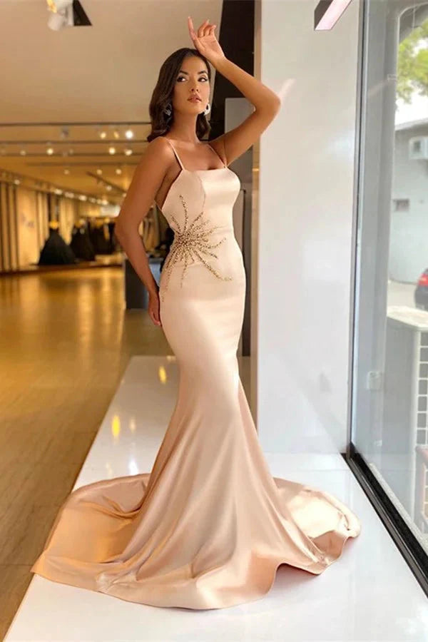 Charming Spaghetti-Straps Mermaid Evening Dress Long With Beadings