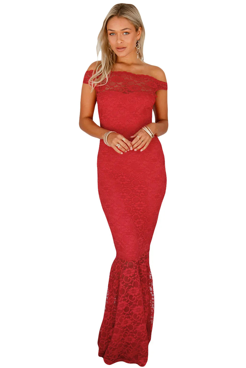 Chic Off-the-Shoulder Mermaid Lace Long Evening Dress