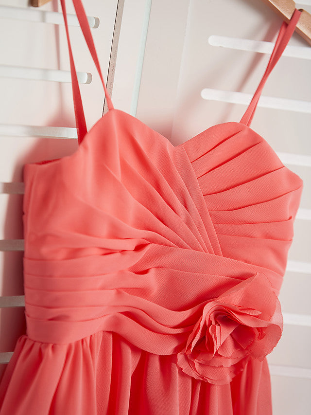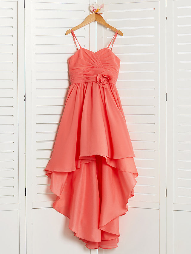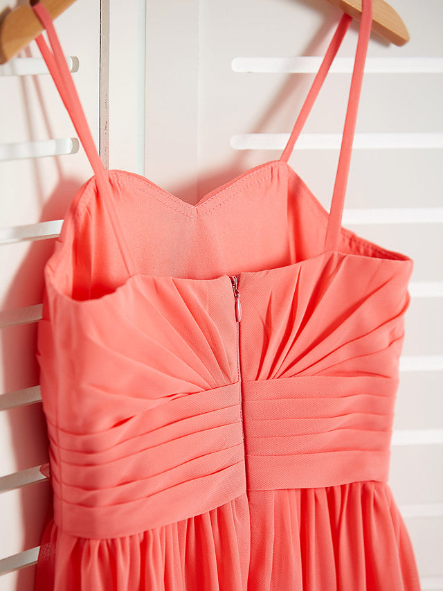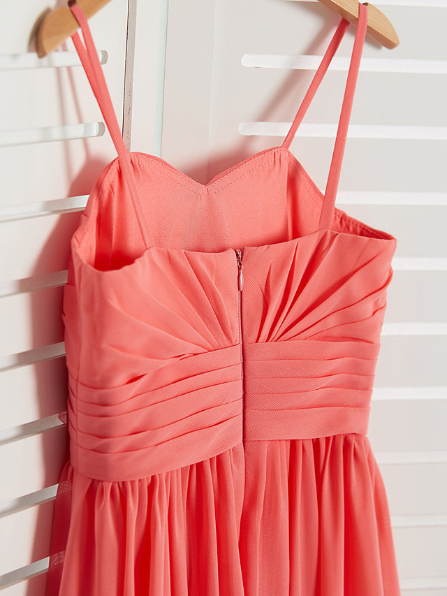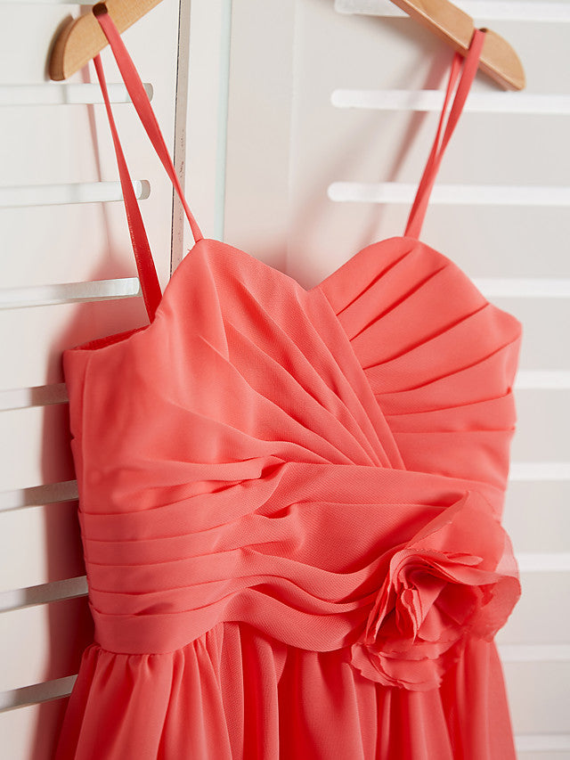 Chiffon A-Line Flower Girl Dress With Spaghetti Strap and Tea Length Pleats
