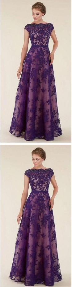 Elegant Floor Length Evening Dress, Bateau neckline Tulle Lace Appliques Mother of Bride Dress, A Line Prom Dress cg1168
