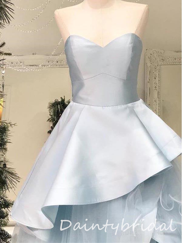 Elegant Light Blue Satin Tulle Sweetheart A-line Long Prom Dresses Evening Dress, OL883
