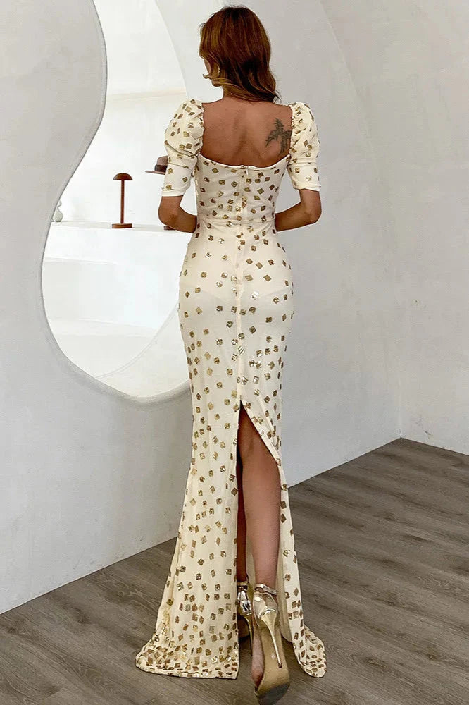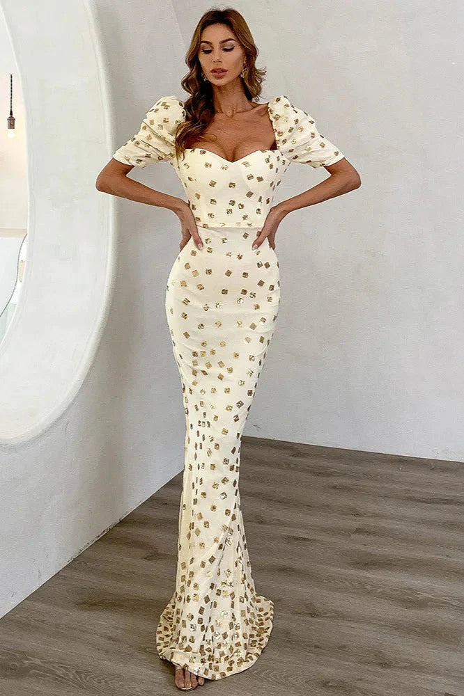 Elegant Puff Sleeve Mermaid Long Evening Party Dress