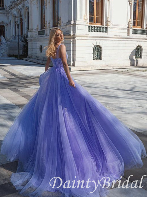 Elegant Straps A-line Tulle Long Gown Prom Dresses Evening Dress, OL853