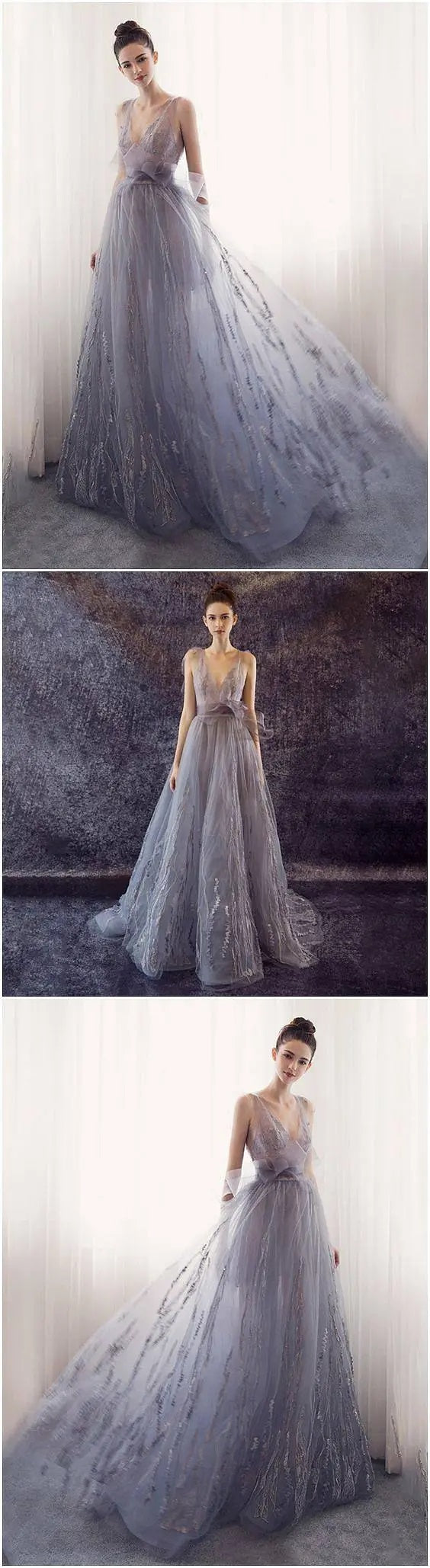 Elegant Tulle V-neck Applique Prom Dress, DB10999