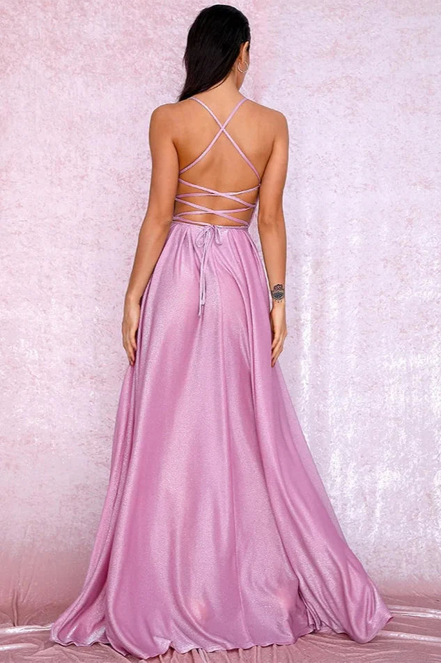 Elegant V-Neck Long Prom Dress Shinning Sleeveless Evening Gowns Online