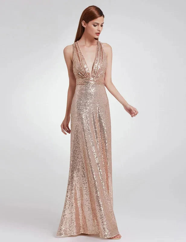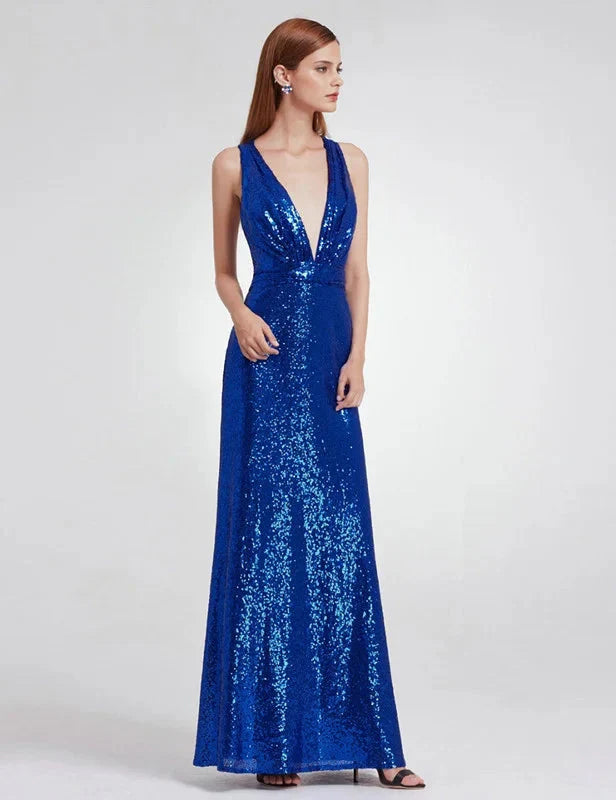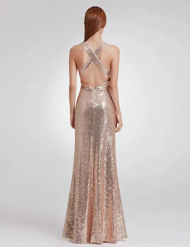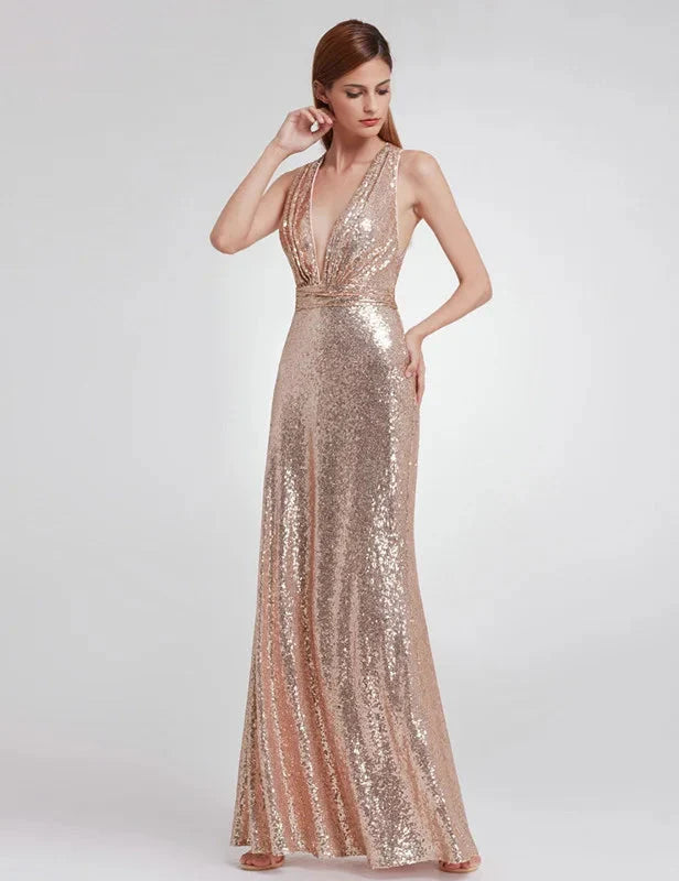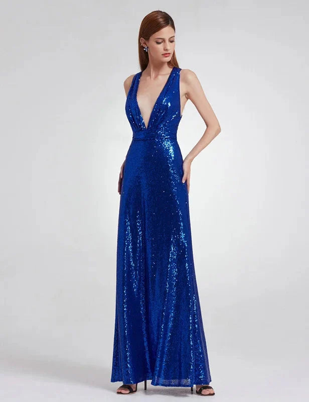 Elegant V-Neck Sleeveless Sequins Long Evening Prom Dress Online