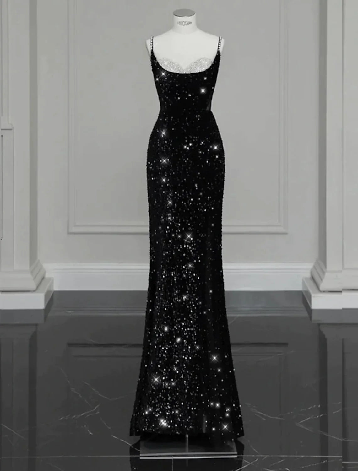 Evening Gown Sexy Dress Formal Floor Length Sleeveless Strap Sequined with Bow(s) Crystals