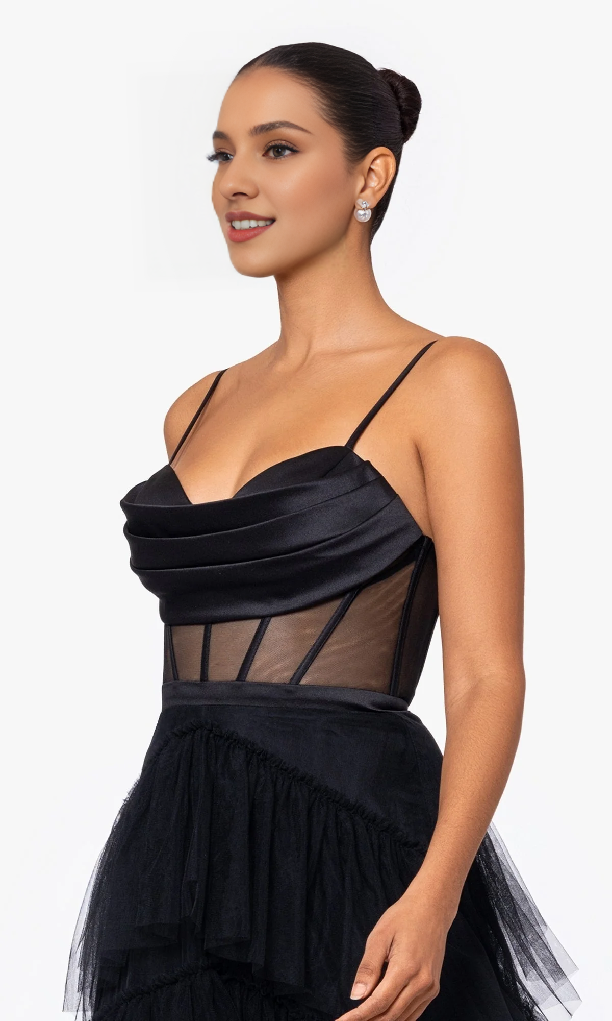 Folded cape collar transparent tight corset layered ruffle edge dress