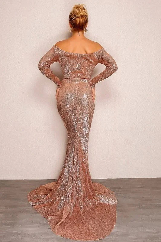 Glamorous Long Sleeve Off-the-Shoulder Sequins Evening Gowns Mermaid Prom Dress Online