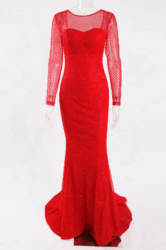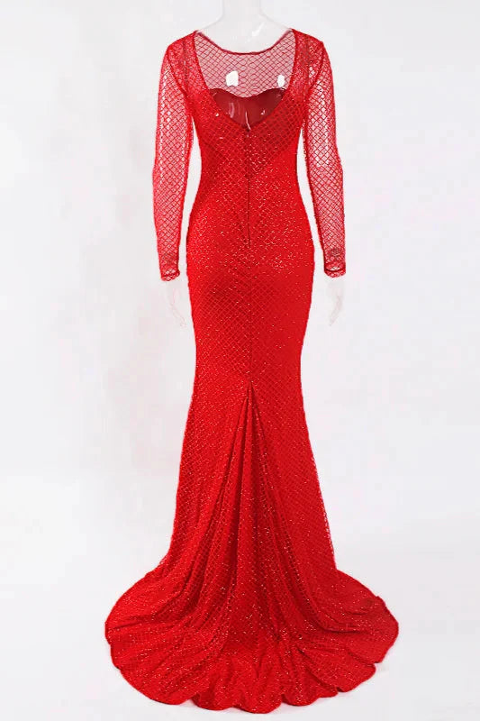 Glamorous Long Sleeve Red Prom Dress Long Mermaid Sequins Evening Gowns