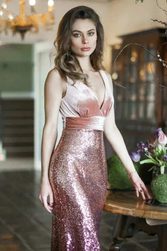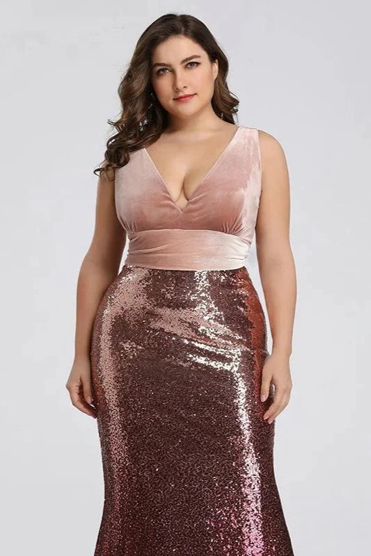 Glamorous Ombre Sequins Velvet Mermaid Plus Size Evening Prom Dress Online