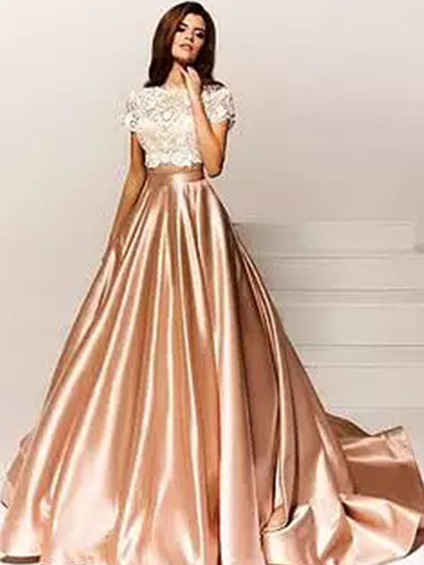 Gold Two Pieces Short Sleeves Prom Dress, DB10963