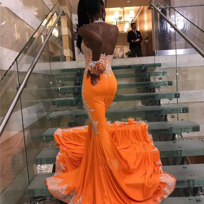 Gorgeous Mermaid Orange Prom Dress for Black Girls Winter Dance Dresses