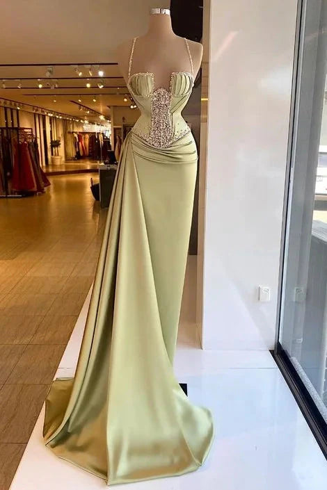 Gorgeous Spaghetti-Straps Mermaid Long Evening Dress With Beads