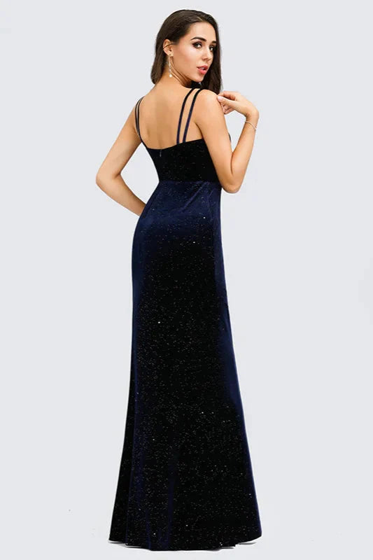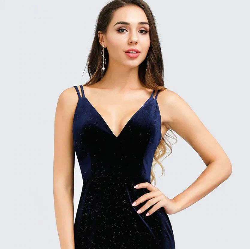 Gorgeous V-Neck Velvet Evening Gowns Mermaid Long Prom Dress