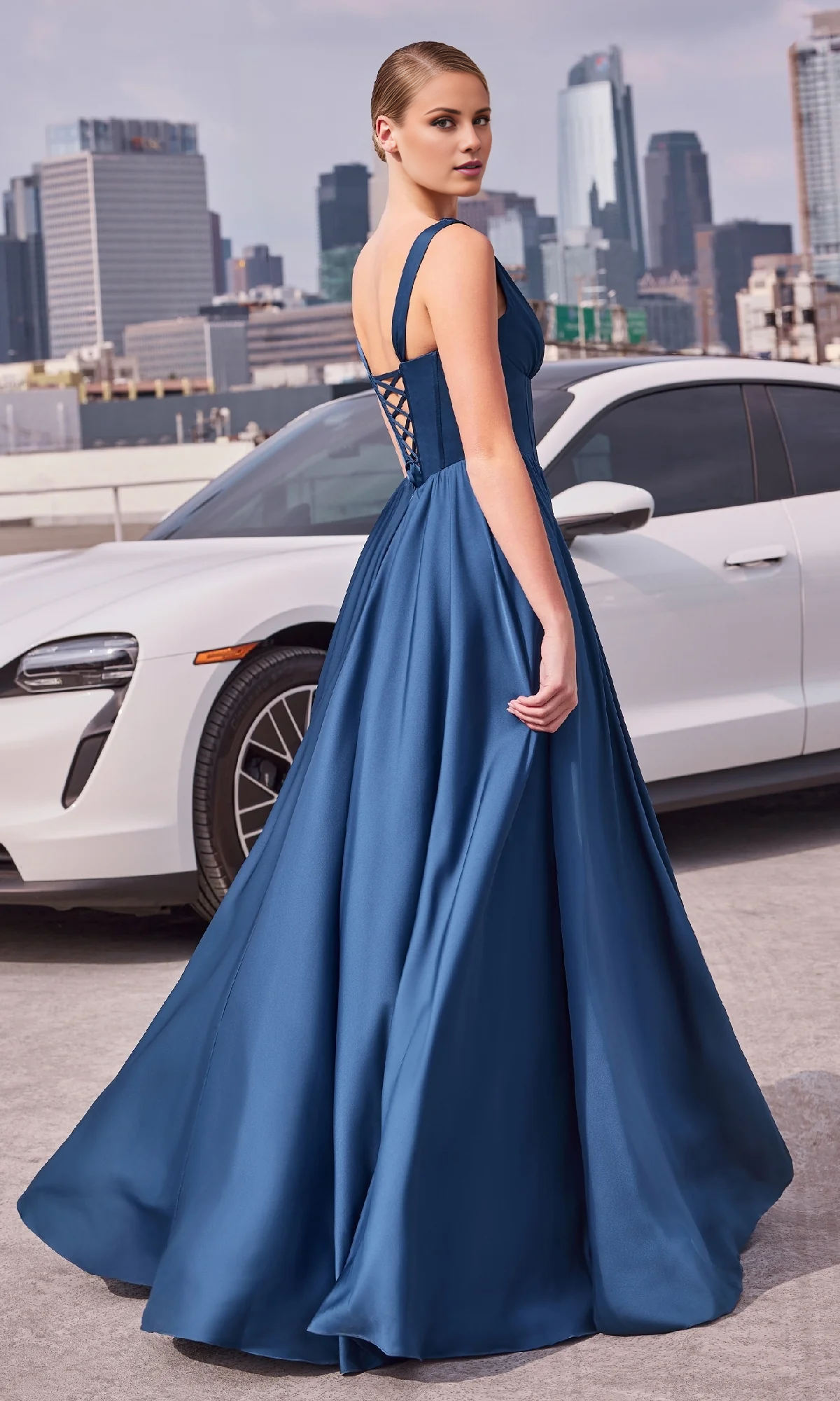 Jimiss A-LineV collar satin tight corset and floor length Prom dress
