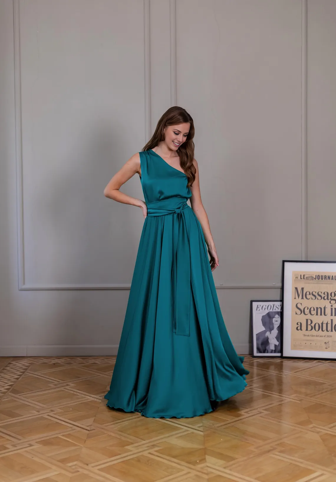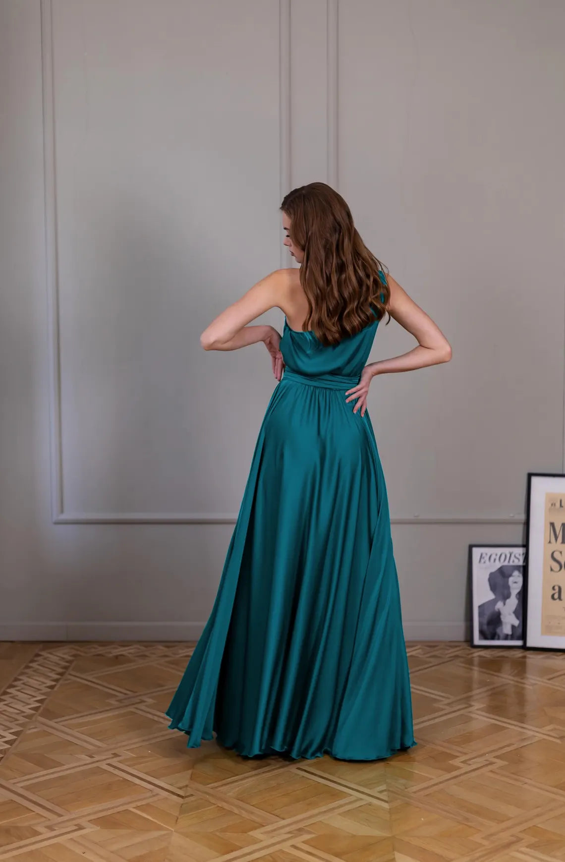 Jimiss - Asymmetric collar backless satin and floor length Prom dress