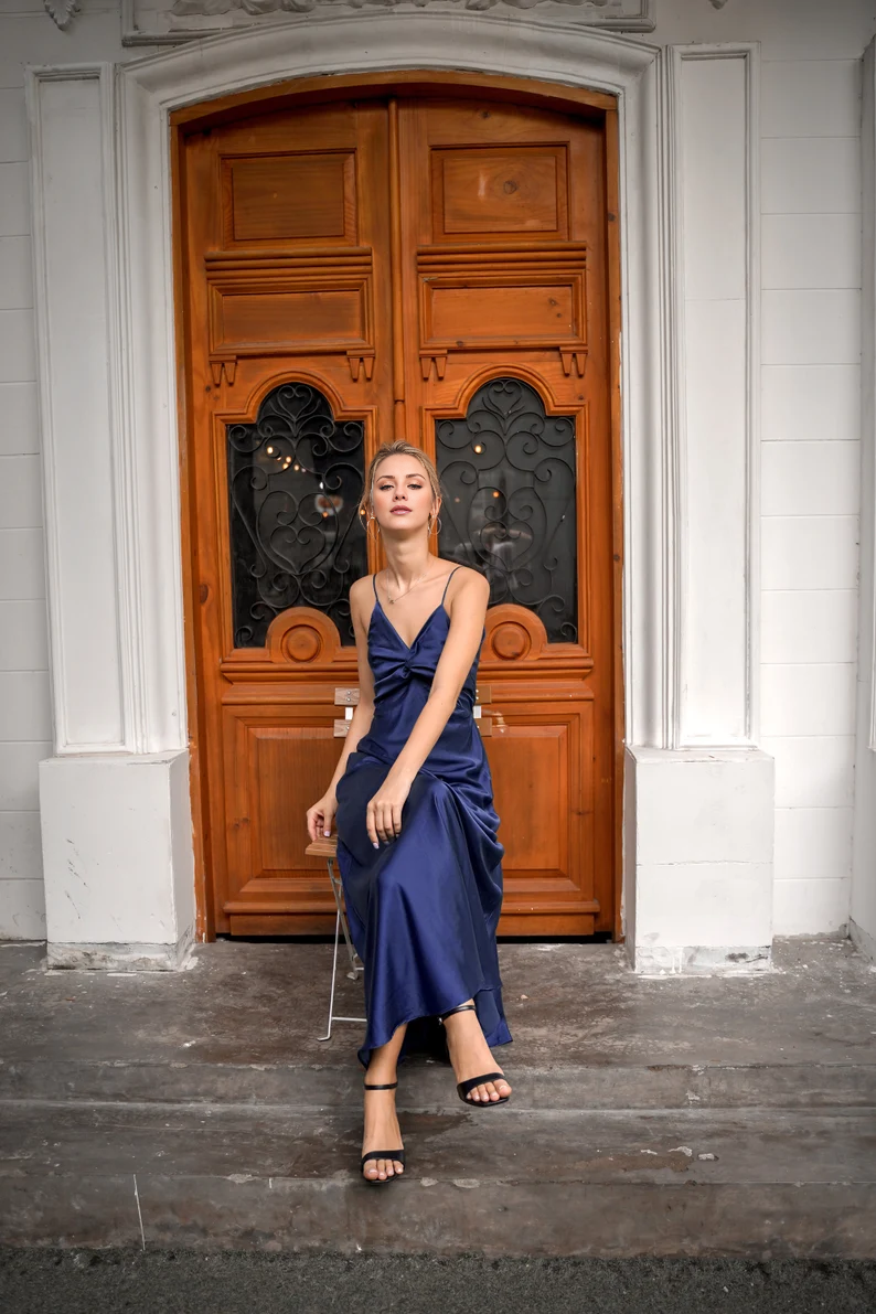Jimiss - backless deep V-thin shoulder strap satin and floor length Prom dress