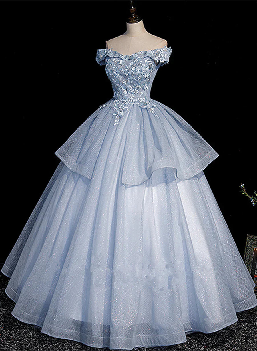 Light Blue Ball Gown Tulle with Lace Formal Dress, Blue Sweet 16 Dresses