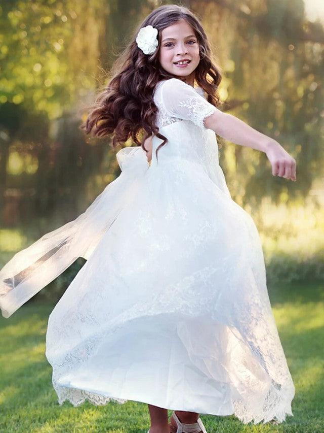 Long Sleeve Jewel A-Line Floor Length Flower Girl Dress
