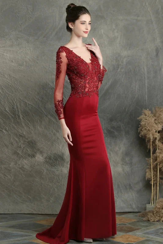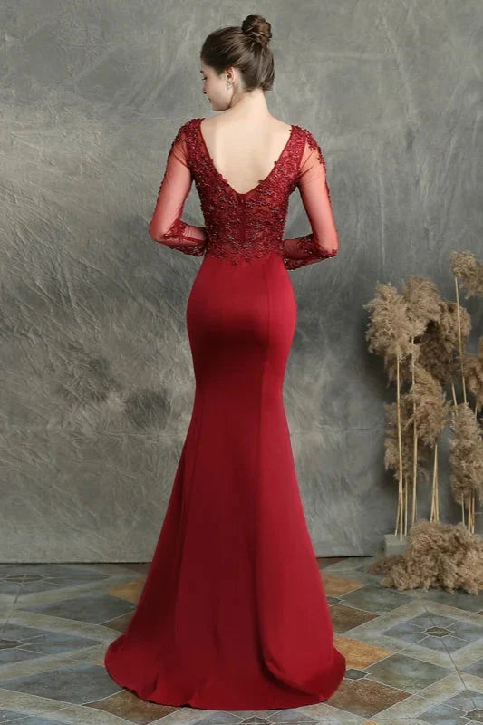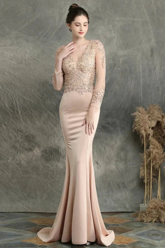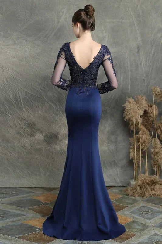 Long Sleeve Lace Appliques Mermaid Evening Prom Dress Online