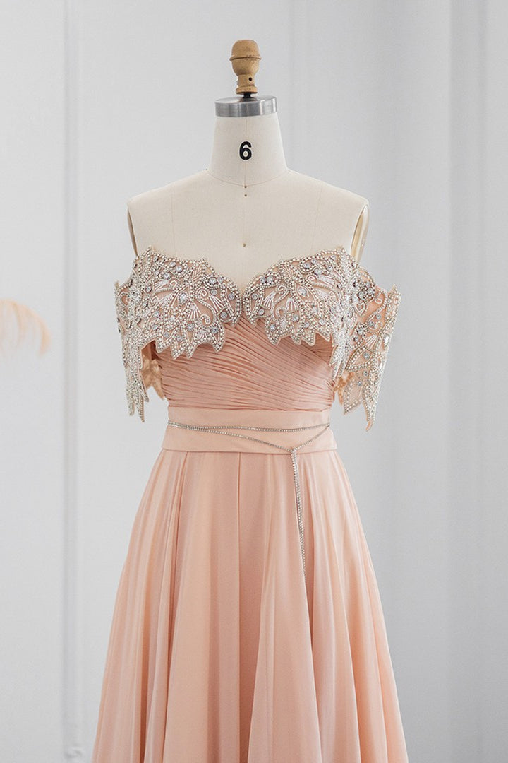 Lotus Off The Shoulder A Line Evening Dress with Chiffon Appliques