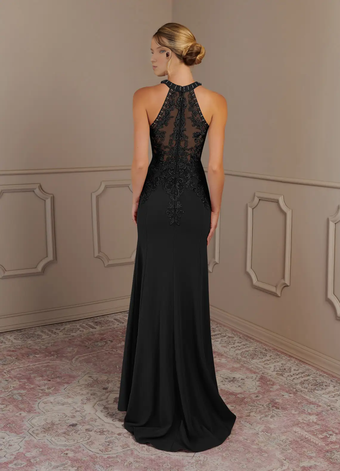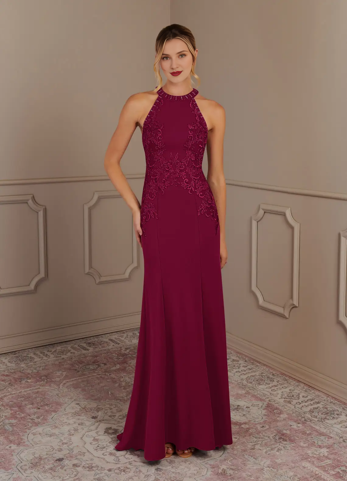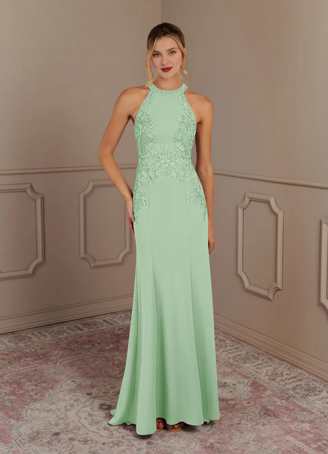 Mermaid neck hanging lace crepe and floor length mother of the bride dress