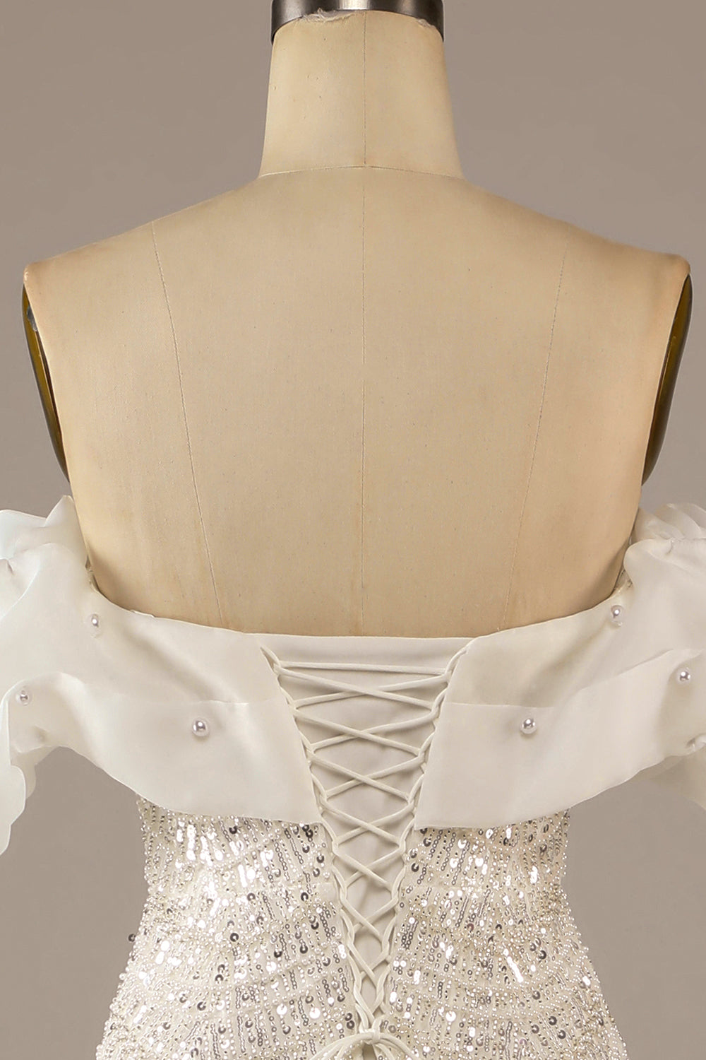 Mermaid Off The Shoulder Sweep Train Wedding Dress with Sequins Sparkly Prom Dresses