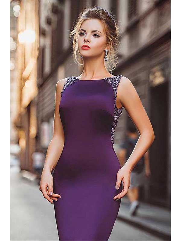 Mermaid Sleeveless Purple Long Beading Tulle Prom Dress, OL686