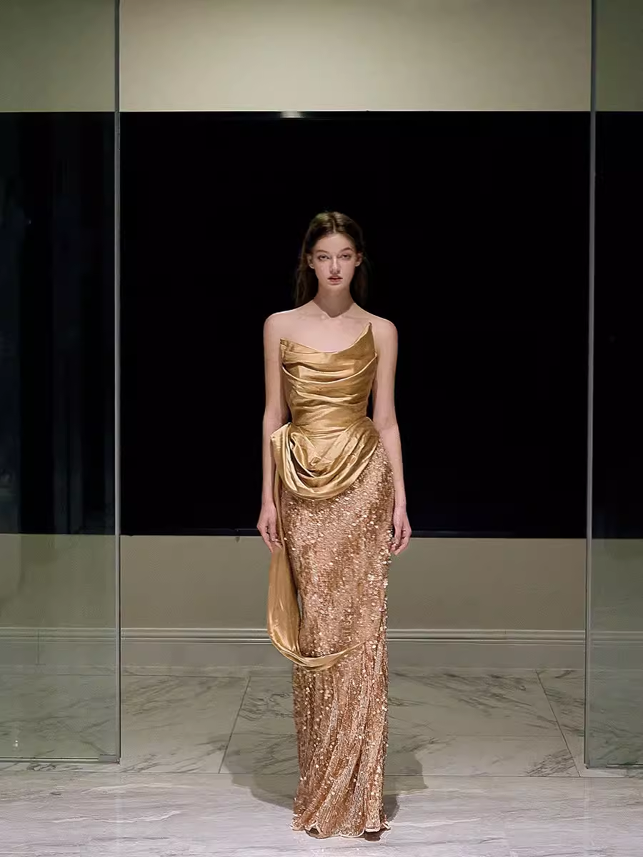Mermaid Strapless Sequin Prom Dresses Evening Dress P2061