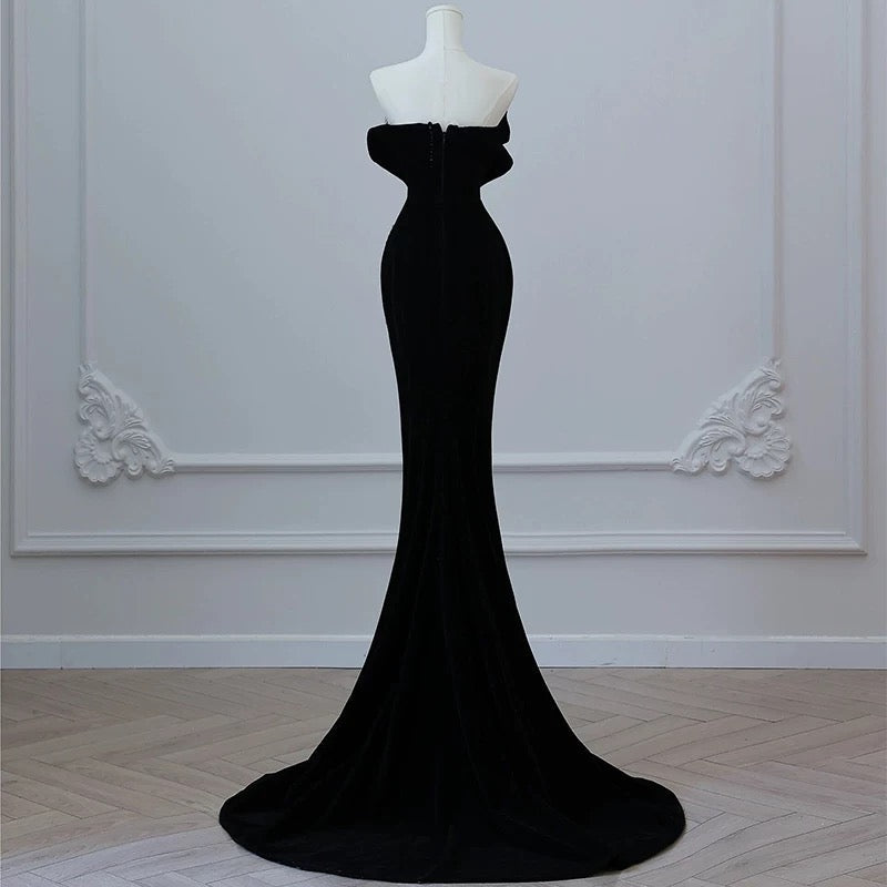Modest Mermaid Strapless Black Long Floor Length Beads Prom Dresses P2405