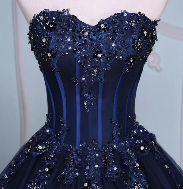 Navy Blue Lace Applique Tulle Long Party Dress Formal Gown Off Shoulder Floor Length Prom Dress