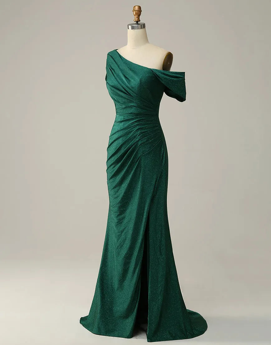 Off The Shoulder Long Glitter Prom Dress With Split Sparkly
