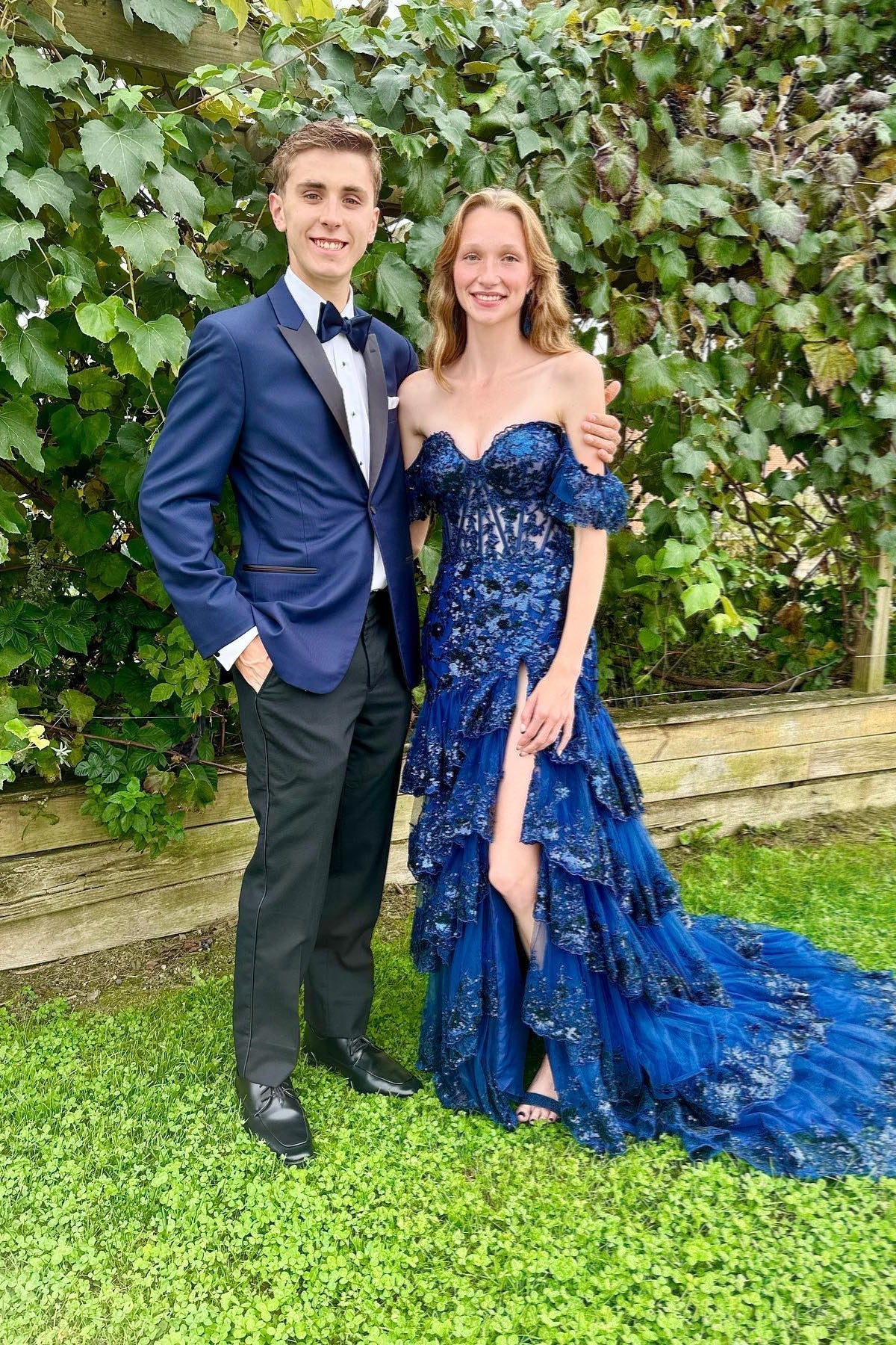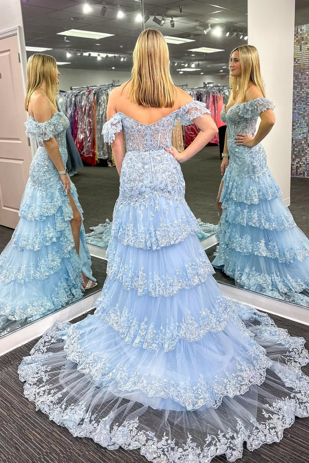 Red Sequin Tiered Mermaid Long Dress Slit Prom Dresses