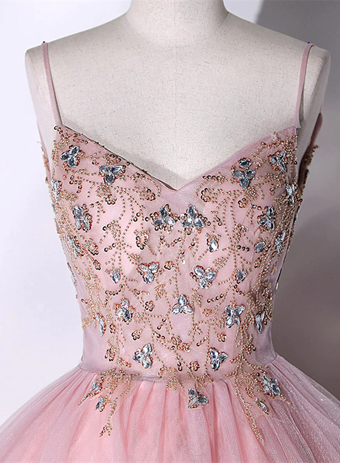 Pink Ball Gown Beaded V-neckline Prom Dress, Pink Sweet 16 Dresses