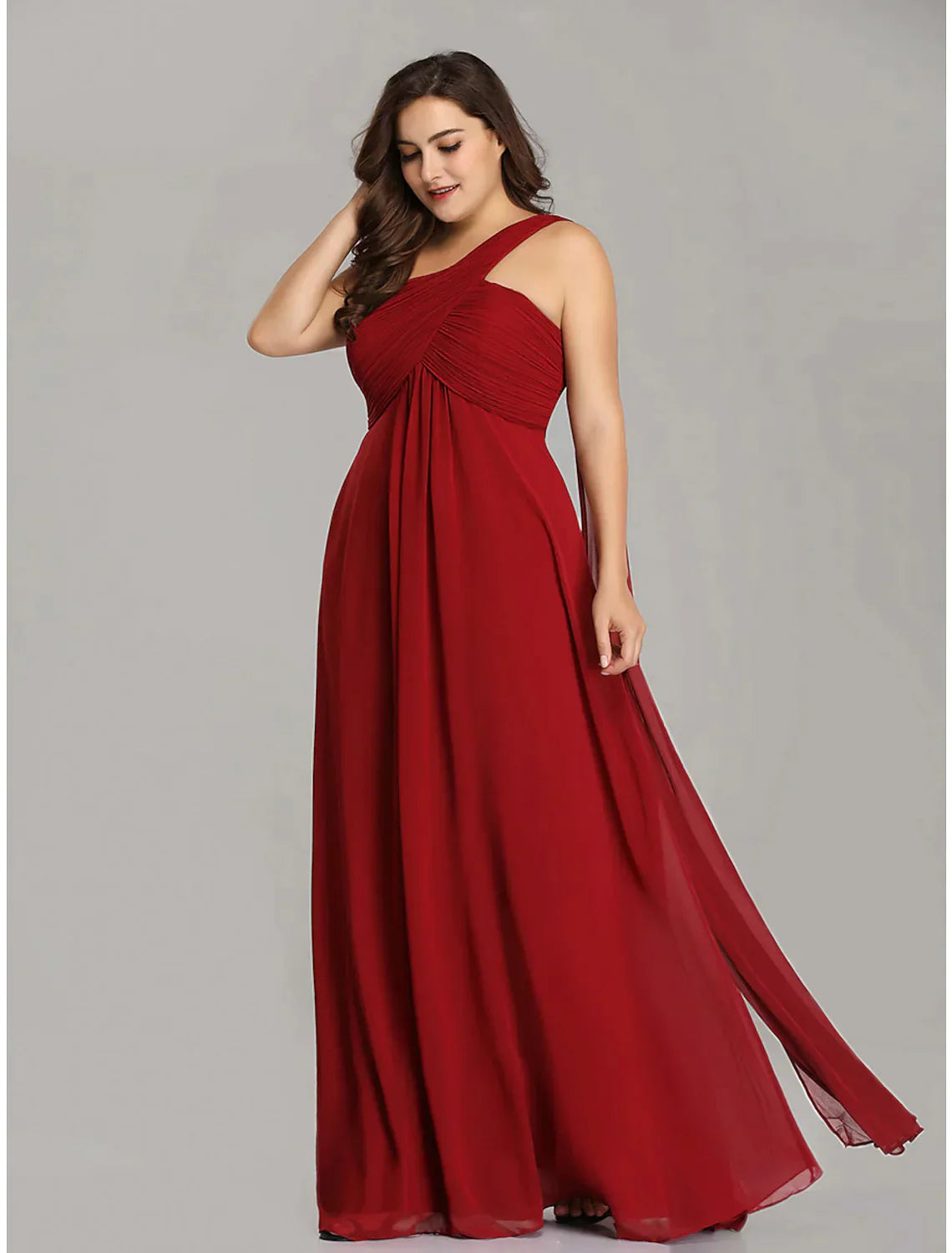 Plus Size Wedding Guest Formal Evening Dress One Shoulder Backless Sleeveless Floor Length Chiffon Pleats Draping