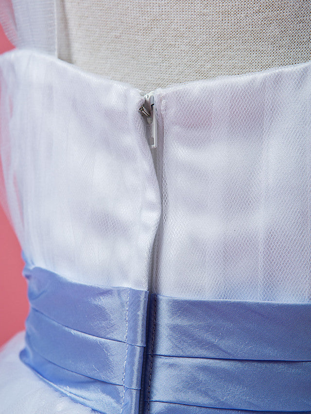 Princess A-Line Knee Length Tulle Sleeveless Dress With Feathers / Fur / Sash / Ribbon / Ruched